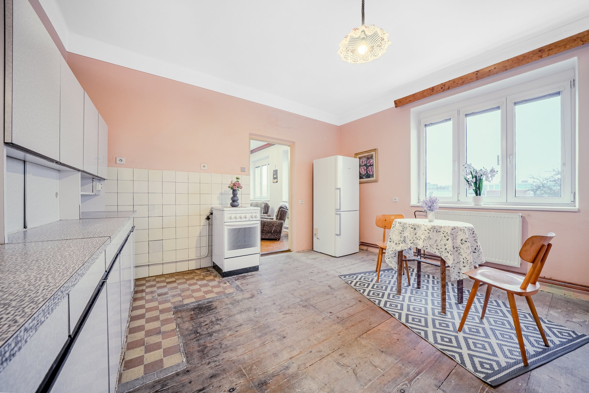 - Patro (byt 3+kk): Jednotka určená k rekonstrukci. Interiér a elektroinstalace jsou původní, ale topení je již modernizováno.