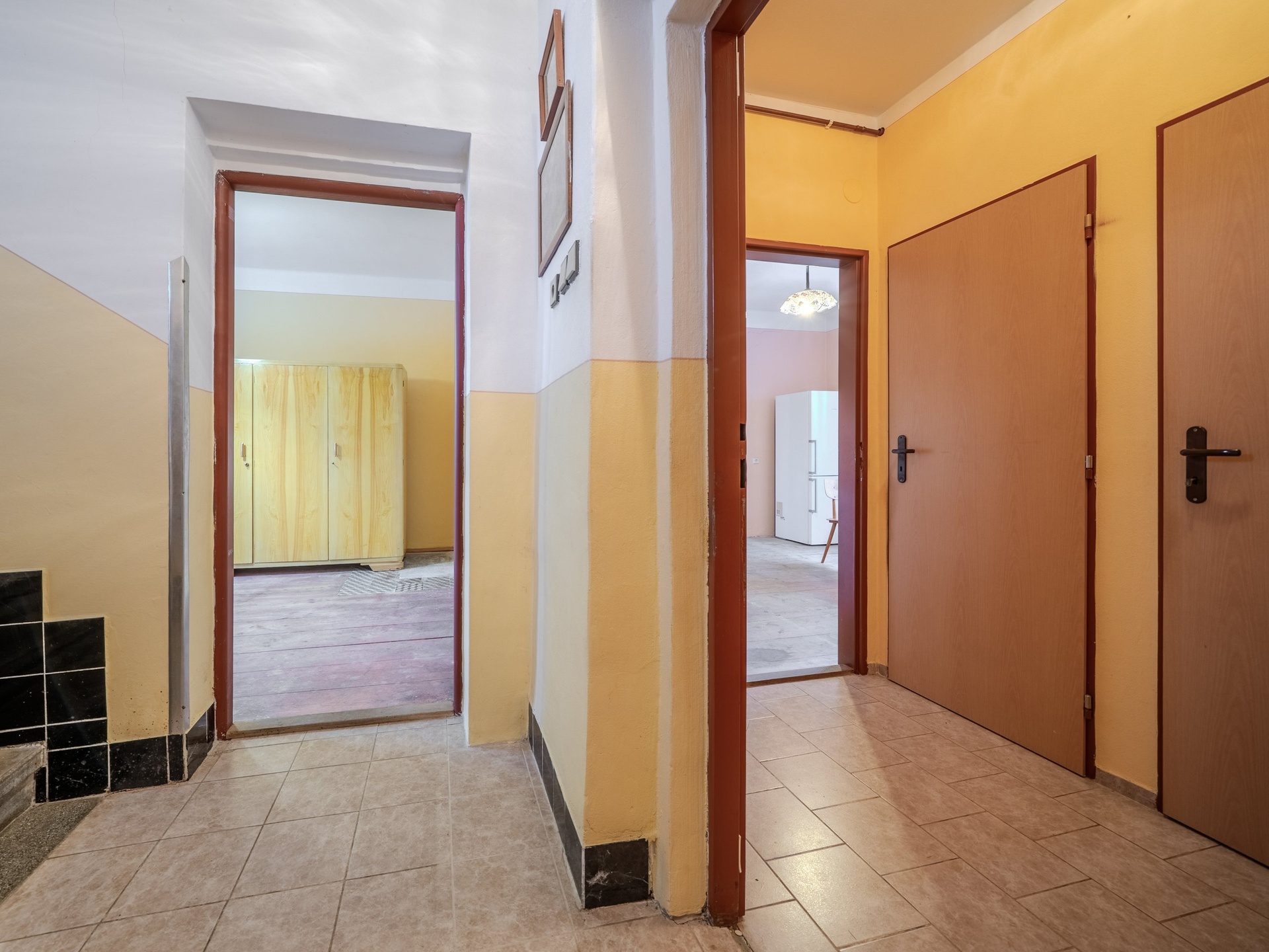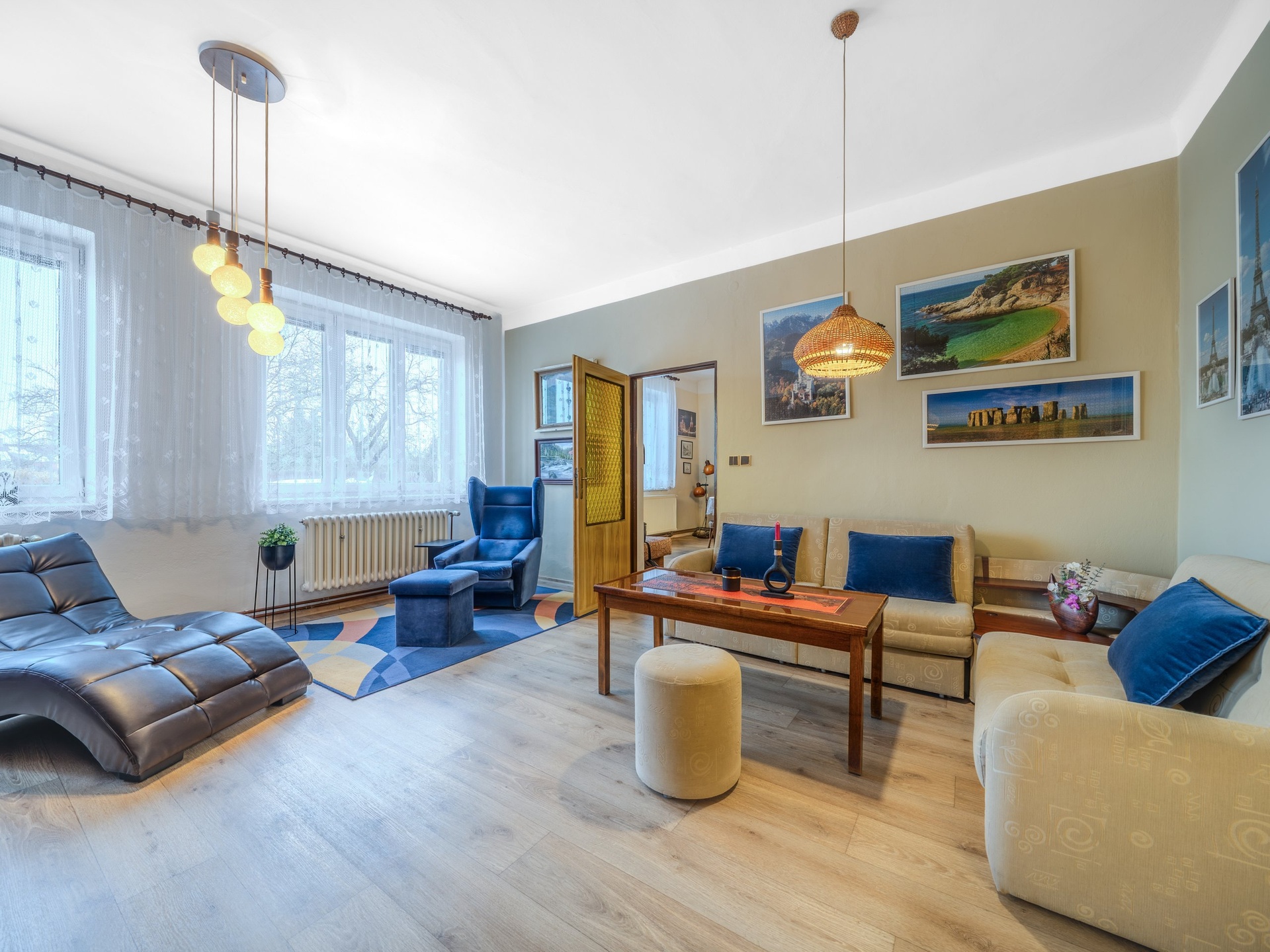 - Přízemí (byt 3+1): Aktuálně obývaná jednotka s plnohodnotným zázemím pro rodinné bydlení.