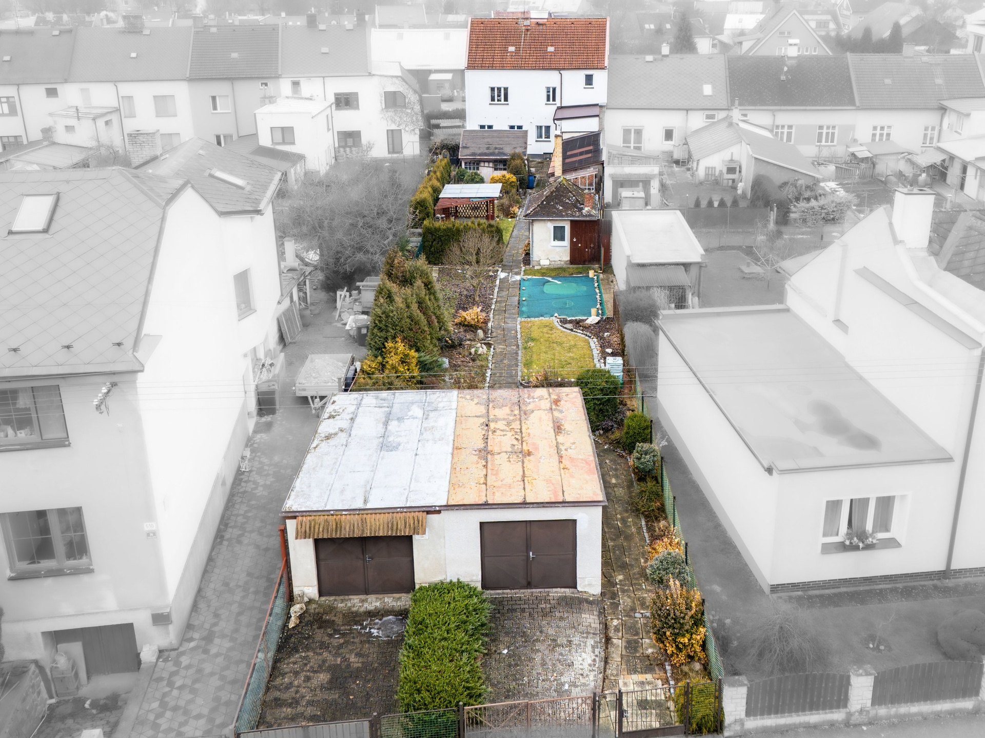 Zásadní výhoda: Nemovitost má samostatný přístup z ulice Antonína Slavíčka, kde se nachází dvougaráž. Tento druhý vstup umožňuje budoucí rozdělení pozemku nebo další výstavbu (dle územního plánu).