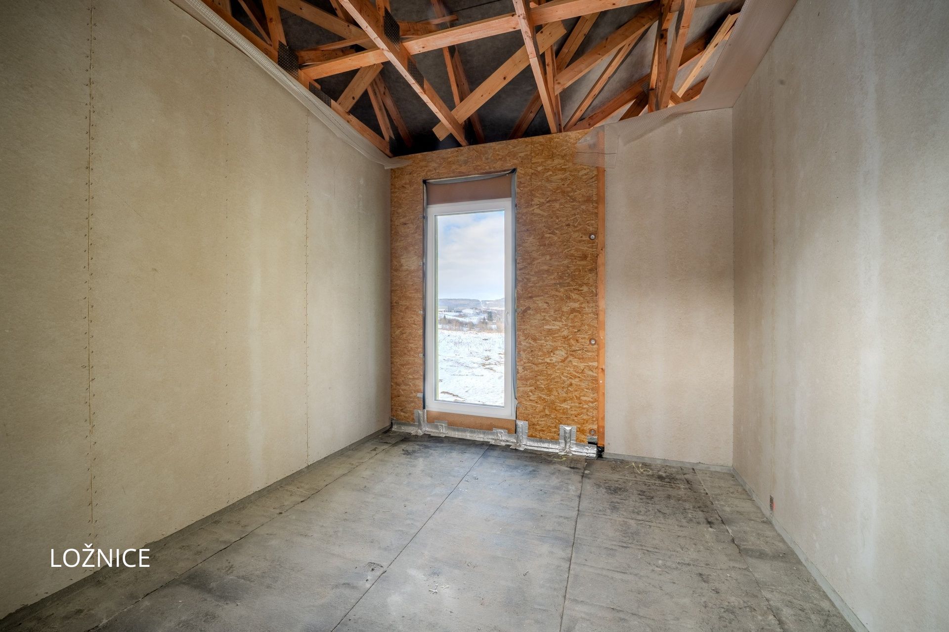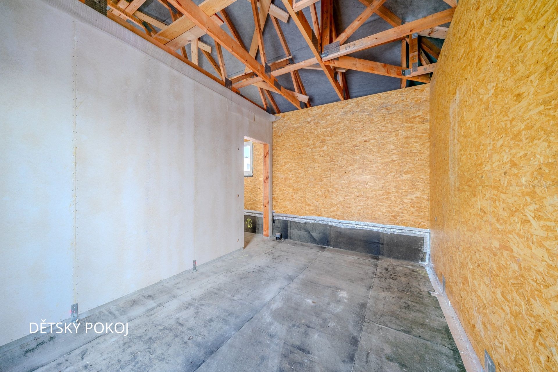 - Úložné prostory: Část půdy je plánována pro skladování sezónních věcí.
